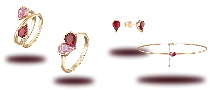 Прикраси в новій лімітованій колекції LOVERS присвячено стану закоханості, першим побаченням. Основою стали червоні та рожеві сапфіри, які символізують теплоту й романтику поруч зі спалахом емоцій та пристрастю. Лабораторні сапфіри мають форму половинки серця. Їх можна поєднувати у прикрасах як символ взаємного кохання.
