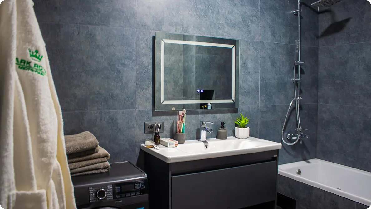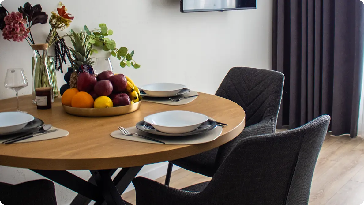 У квартирі світло та затишно. Є всі меблі, техніка, посуд. У холодильнику – необхідні продукти. Про все це подбав забудовник, щоб родина одразу змогла насолодитися комфортом у новій квартирі.