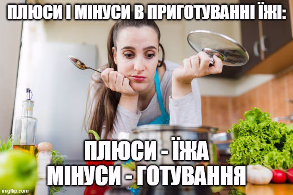 Врешті я змирився, що кухаря з мене не вийде. Навіщо витрачати стільки часу та грошей, якщо потім харчі опиняються у сміттєвому відрі? На щастя, існує готова їжа. У морозилці постійно маю нагетси, крильця і стрипси. Нарізаю овочі, додаю соуси - і смачна страва готова, навіть у такого новачка в кулінарії, як я. Якщо хочеться домашньої кухні, купую пюрешку чи гречку з курячою котлетою. Усе легко: розігрів і смачно поїв.